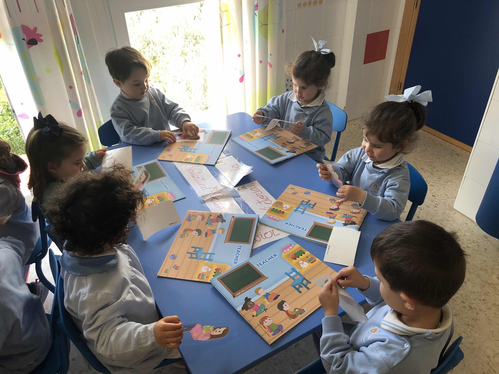 Seguimos trabajando y hoy ha tocado inglés !!! Pegamos a la seño/ teacher